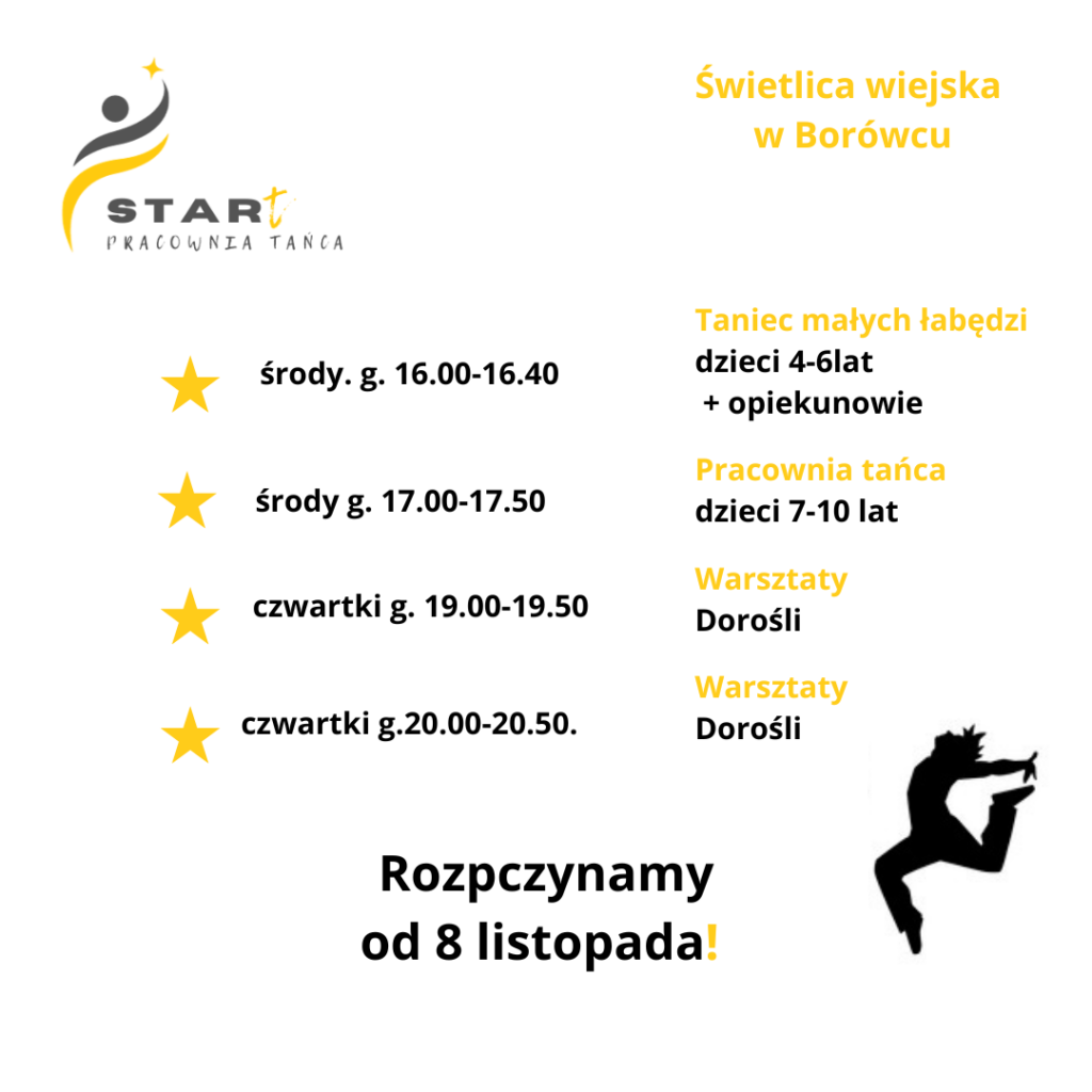 Jeśli lubisz taniec i muzykę oraz mieszkasz w Borówcu albo Zaniemyślu – koniecznie zapisz się na listopadowe spotkania z tańcem!