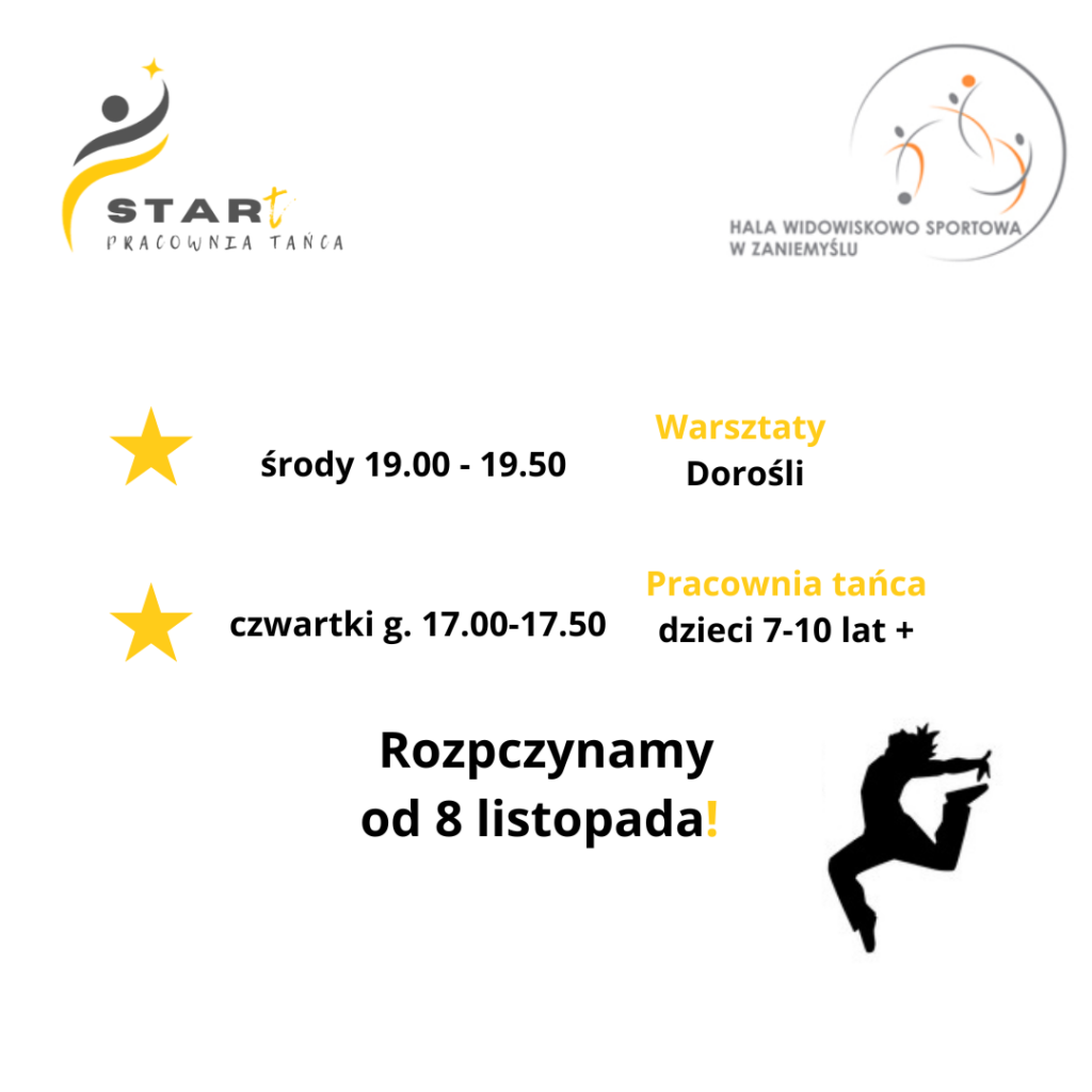Od 8 listopada uruchamiamy warsztaty taneczne dla dzieci, młodzieży, a także dorosłych. Nigdy nie jest za późno na odkrywanie nowych pasji i spełnianie marzeń. Nie zwlekaj i zapisz się!